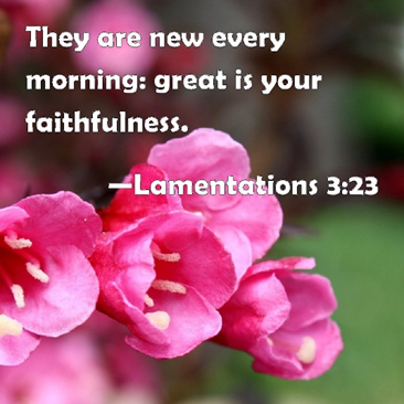 “This I recall to my mind, therefore have I hope. 22 It is of the LORD’S mercies that we are not consumed, because his compassions fail not. 23 They are new every morning: great is thy faithfulness.” (Lamentations 3:21-23)